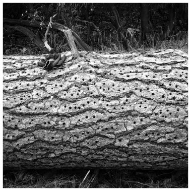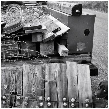 In David and Tamara’s yard a trencher of Ponderosa bark aflame and spinning flies past out of the smoke, striking and igniting the wisteria, the manzanita, grey pines, raked piles of needles along the top of the driveway, then the house itself; and as the fire is no longer new here but circling back in some way, what also flies by is a piece of someone else’s burned home, a fragment of board and batt, lapstrake, cabin wall, cedar mansion kit home, stucco, chicken wire and shreds of flaming one by six, pieces of barns, trailers, a one foot square of presswood veneer spinning sideways, wobbling out of the dark, its grooves 12 inches on center aflame with a patch of pink insulation and panel shard to the meltable but not strictly flammable metal skin of the mobile home from which it’s been ripped. In the wind before it rises to its loudest level, the locomotive roar of the canyon-filling fire, there’s a quieter moment as it’s coming, heralding the katabasis on its way, the voyage through the underworld for everyone here today, sussurus, coruscation, and excoriation; the fire’s boss and motto could read whisper, shine, flay.