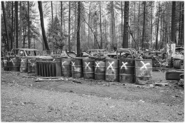 The book is a memoir in 44,000 words, ten chapters, each a separate essay on one theme or another of the fire – evacuation, global warming, native history in the region, Paradise life before the fire. One of the book’s landmarks is its photography, images Neal took in the winter of 2019, documenting the odd and intimate scenes left in the burn zone.