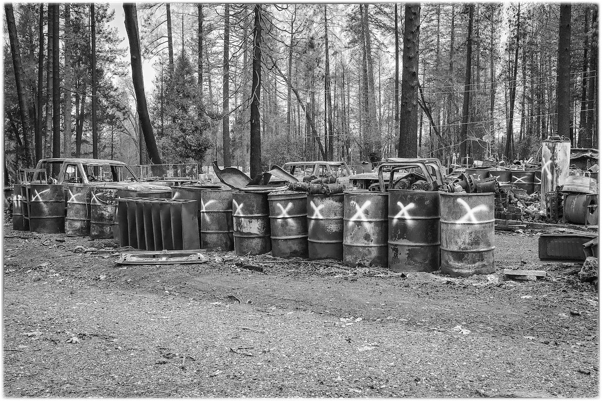 The book is a memoir in 44,000 words, ten chapters, each a separate essay on one theme or another of the fire – evacuation, global warming, native history in the region, Paradise life before the fire. One of the book’s landmarks is its photography, images Neal took in the winter of 2019, documenting the odd and intimate scenes left in the burn zone.